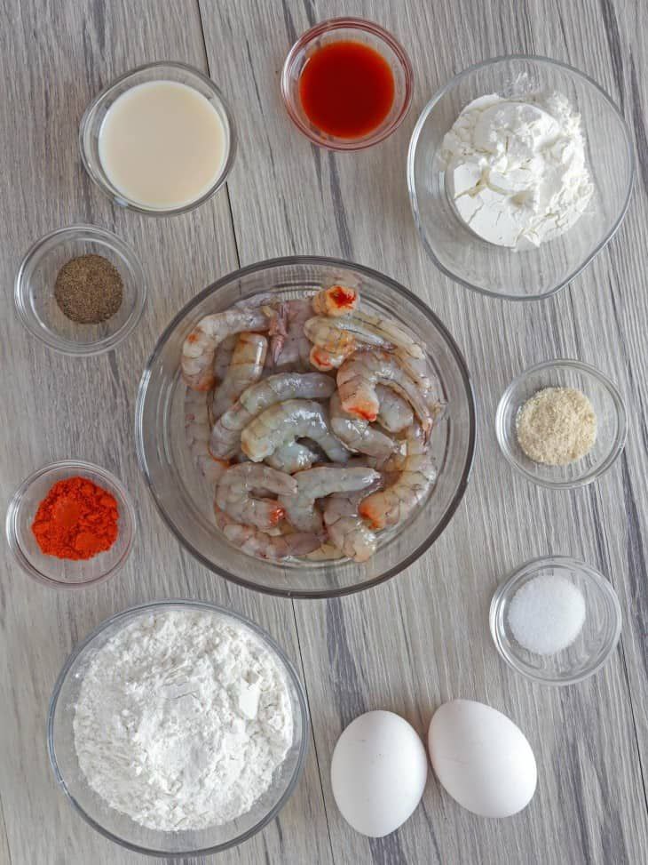 ۱ پوند (حدود ۴۵۰ گرم)،میگوهای تازه یا یخ‌زده؛ کوچک بودنشون کمک می‌کنه پوشش بهتر بچسبه.